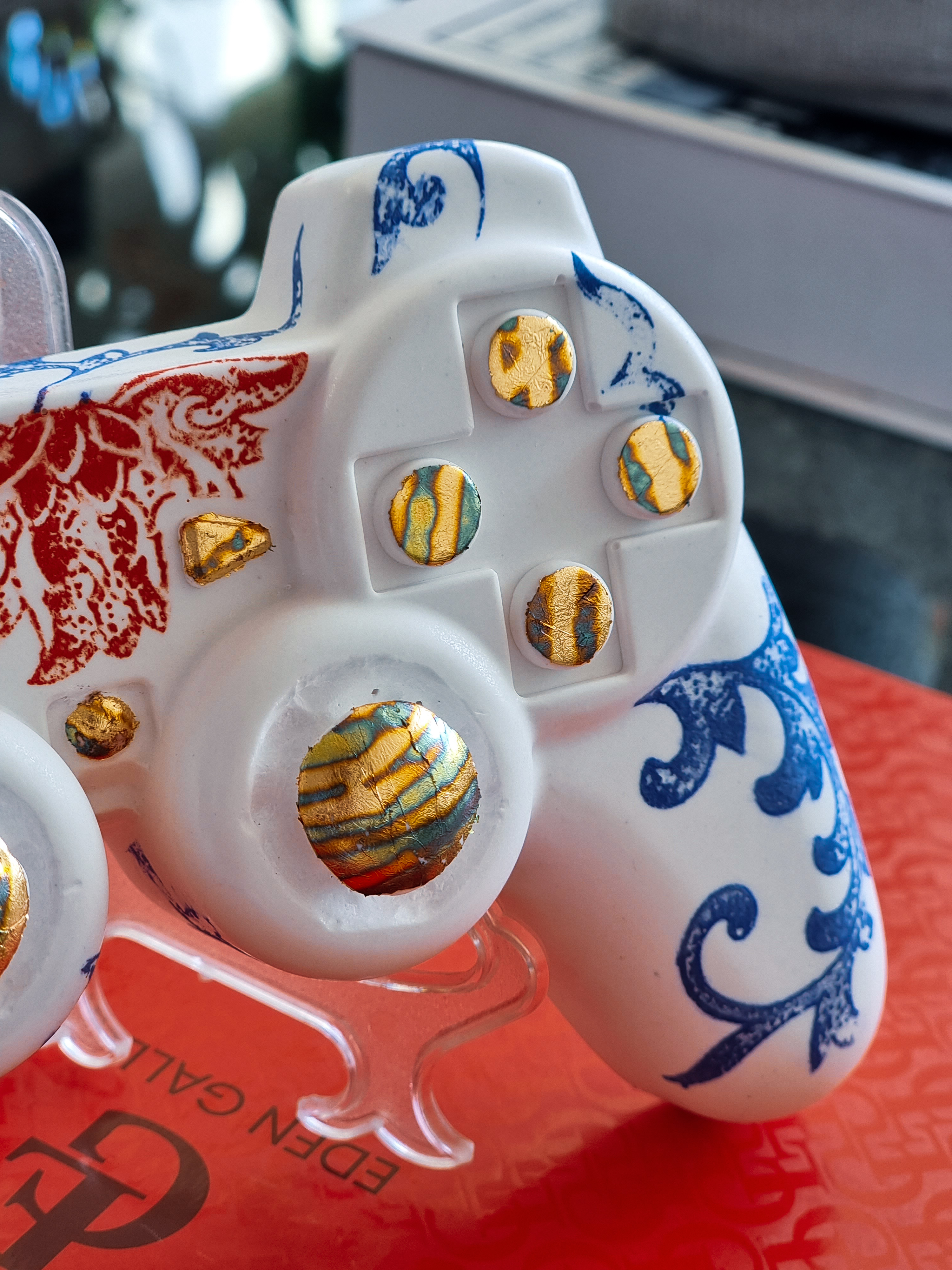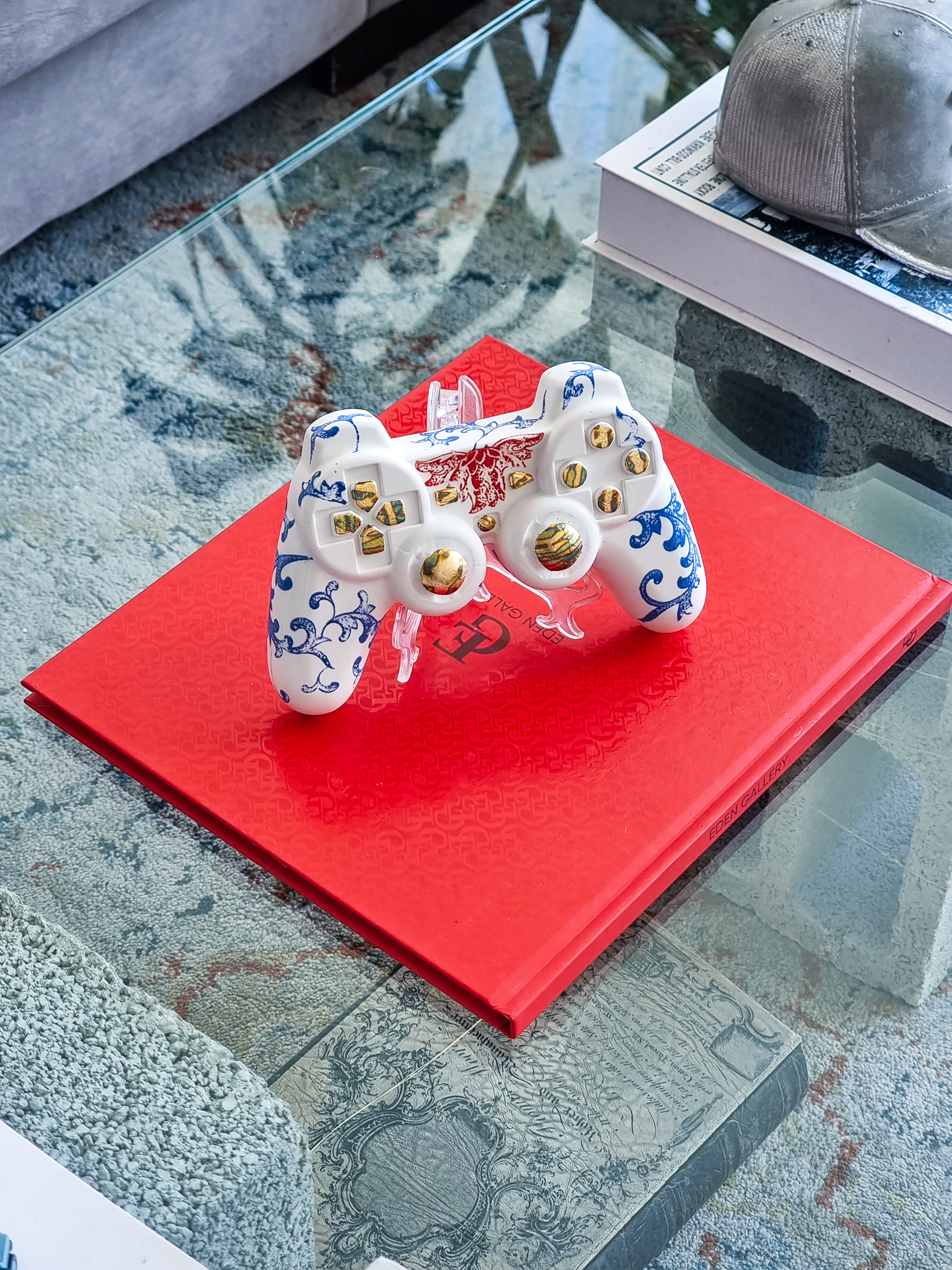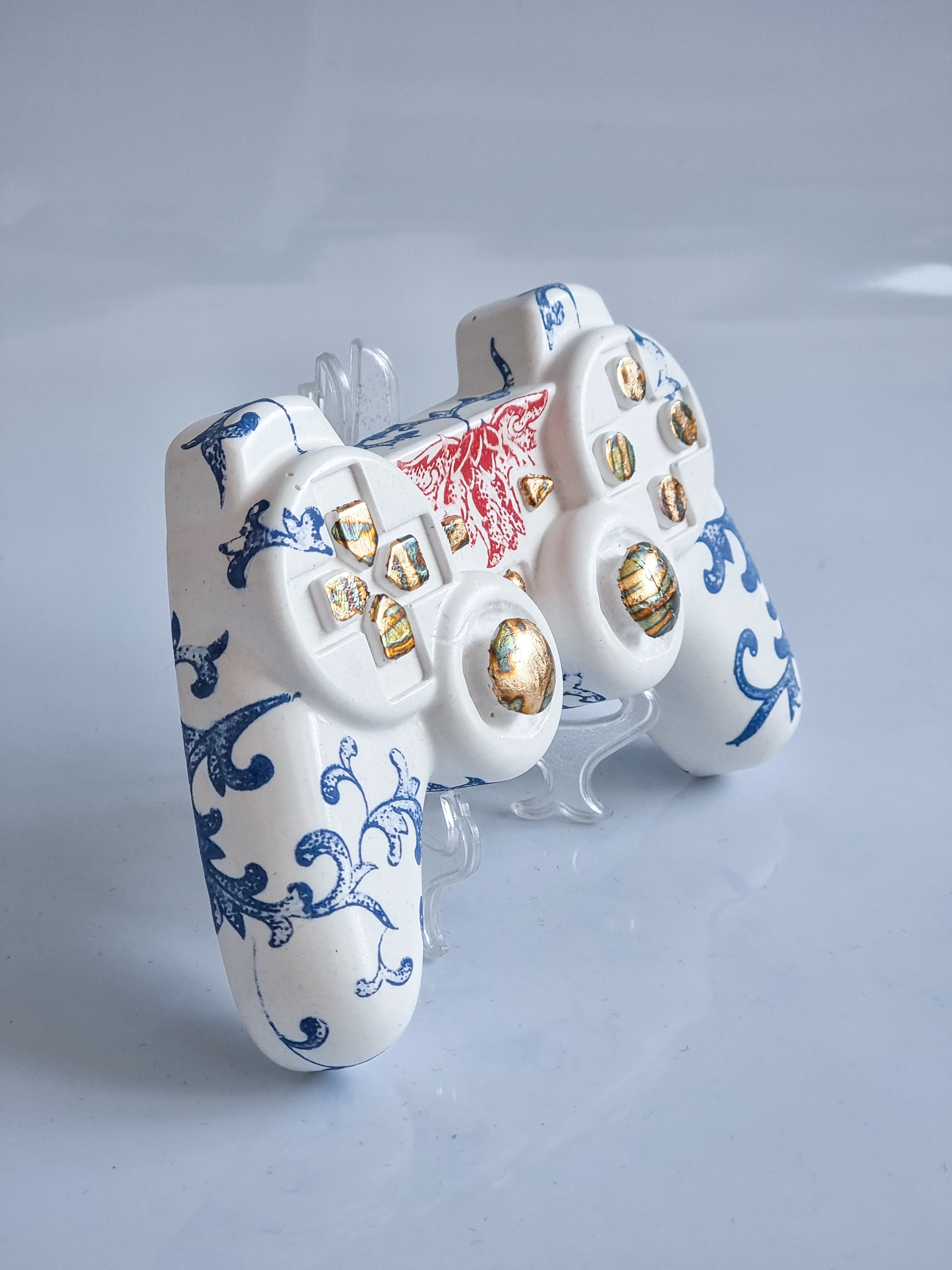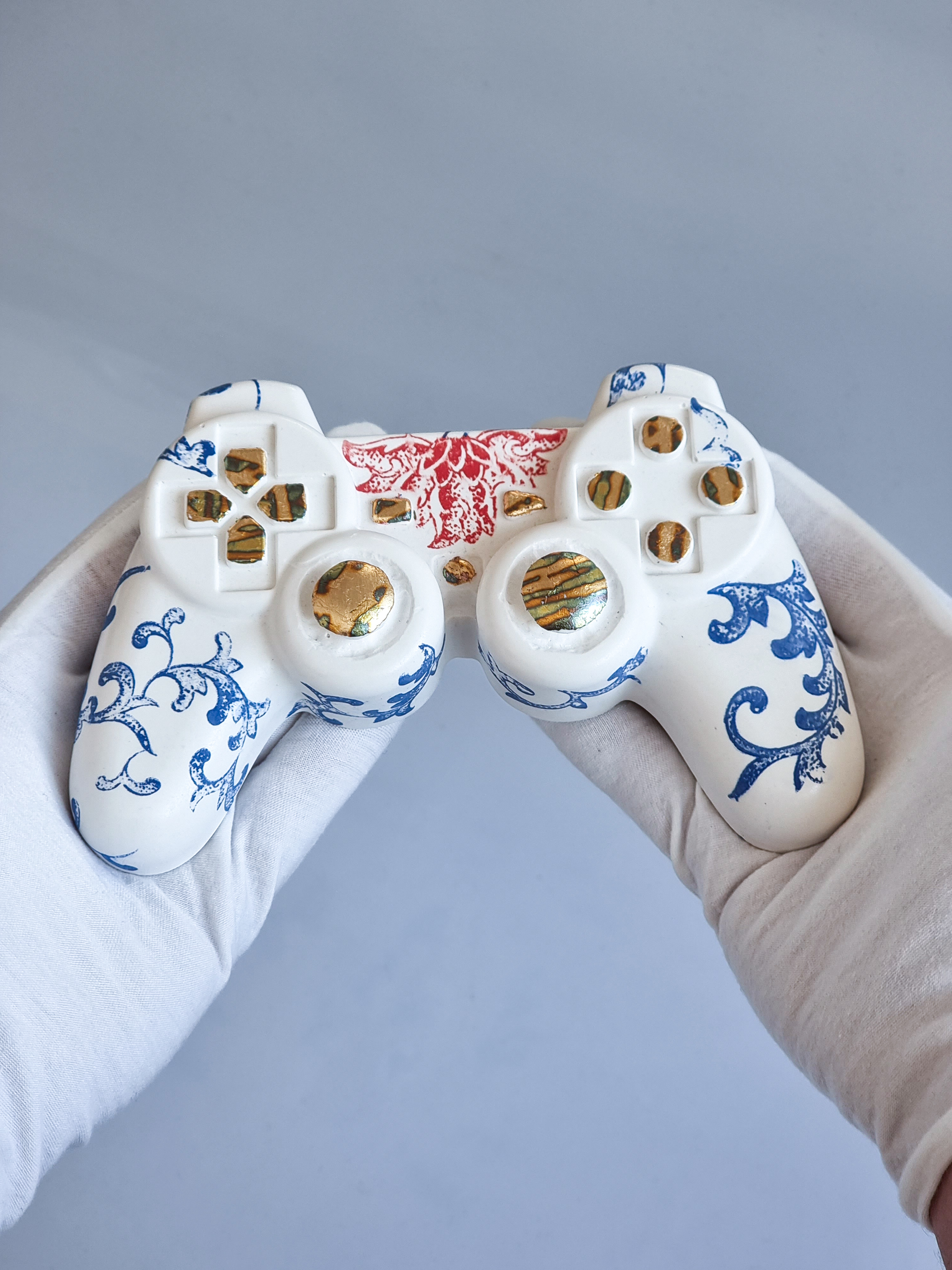 GAMEBOY Relic reimagines the iconic PS controller as a fusion of gaming culture and fine art. Hand-cast in high-quality plaster, adorned with porcelain accents and gold detailing.